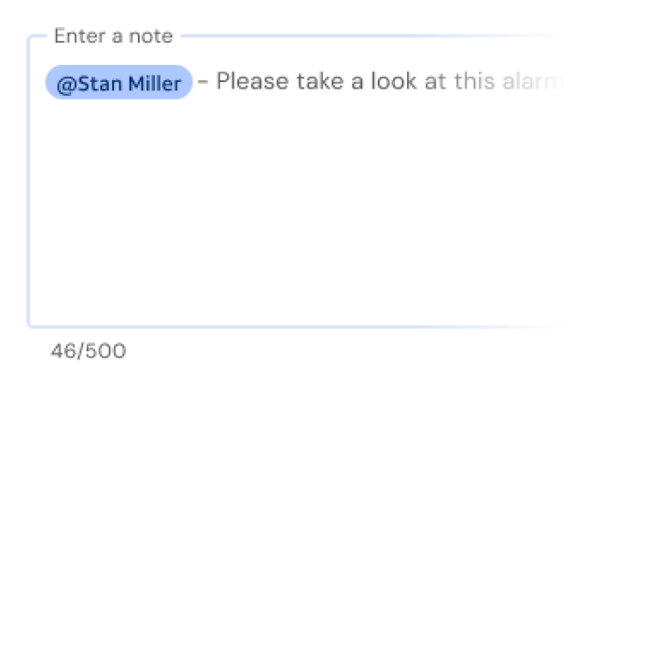 Communication within operations teams is paramount. Analysts, managers and customers relied on peripheral applications to communicate to each other. To reduce extraneous cognitive load, we designed a messaging and notification center in the platform. This also allowed users to tag individuals or teams in notes for alarms, events or investigations.