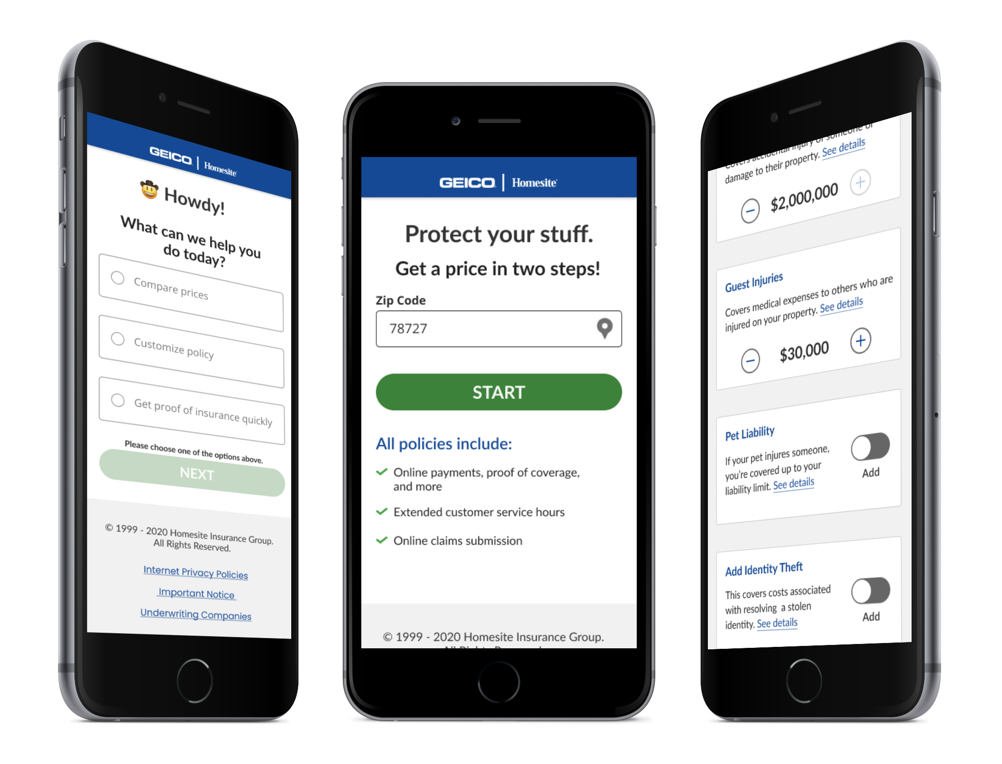 The renters insurance yield was lower than competitors in the same markets. As UX Lead I first looked for usability issues and then began researching what renters wanted from their policy and from their online experience.