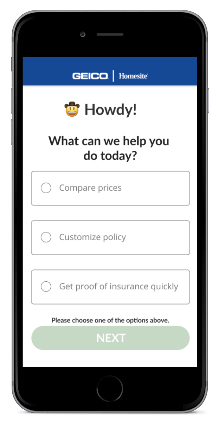 After helping to align our UI with Geico standards, I began ideating on simplifying the flow and adding some personalization to the experience to increase value and trust. Next was getting state specific personalized messaging and coverages. Analytics showed that users that adjusted their coverages on the site were 82% likely to convert to a policyholder. So inline customization was tested in both user tests and A/B production testing. It was a great success.
