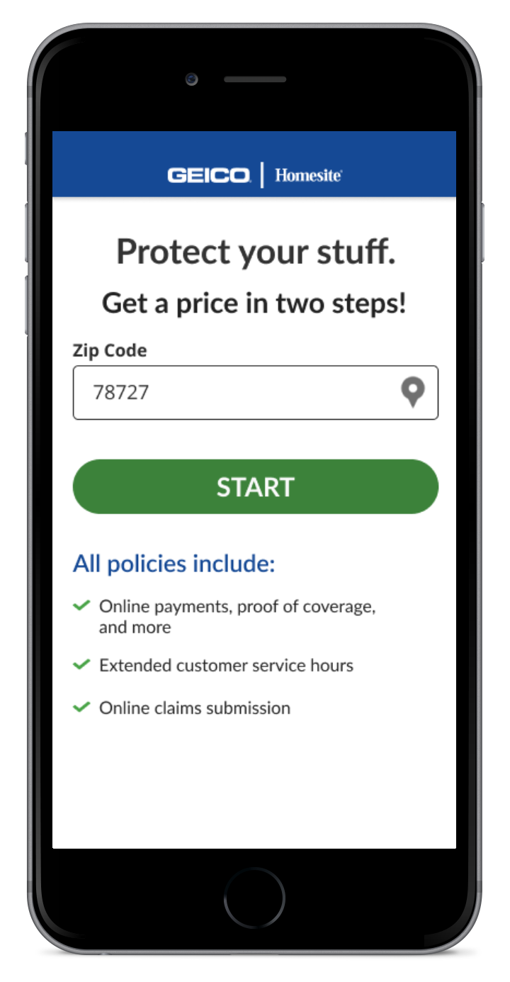 We only needed the user’s zip code to provide a base quote for renters insurance. So with five digits, instead of an entire address, we could get the user started on their journey to purchasing a policy.