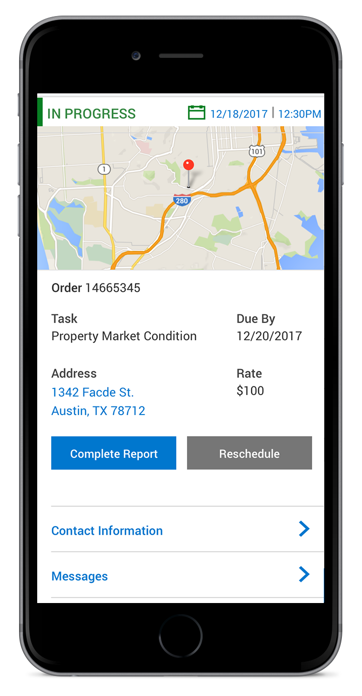 Seeing how many of the inspectors use their mobile devices and the multiple applications it took to complete and manage their tasks, I created features to promote an inclusive experience. In-app GPS navigation was added to aid in the ease of workflow from one site to the next. An integrated calendar feature allowed users to manage their appointments and deadlines in realtime without the need of additional application balancing. Also a secure messaging tool was added to streamline communication between the user and key people in the completion of each job.